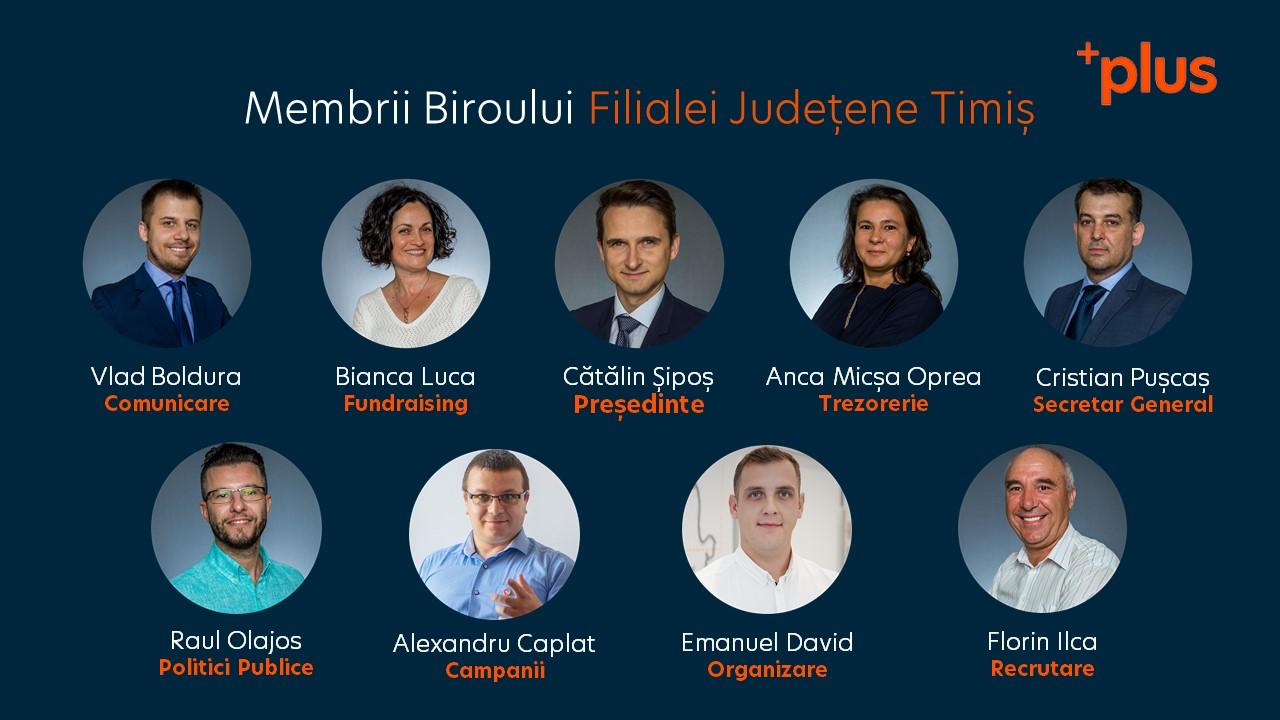 Membrii PLUS Timiș și-au desemnat prima conducere statutară a filialei. Lugojeanca Anca Micșa – Oprea, cea care coordoneaza Plus Lugoj este membră și în conducerea PLUS Timiș. Astfel, cei care vor conduce organizația partidului PLUS din județul nostru pentru următorii doi ani sunt următorii: