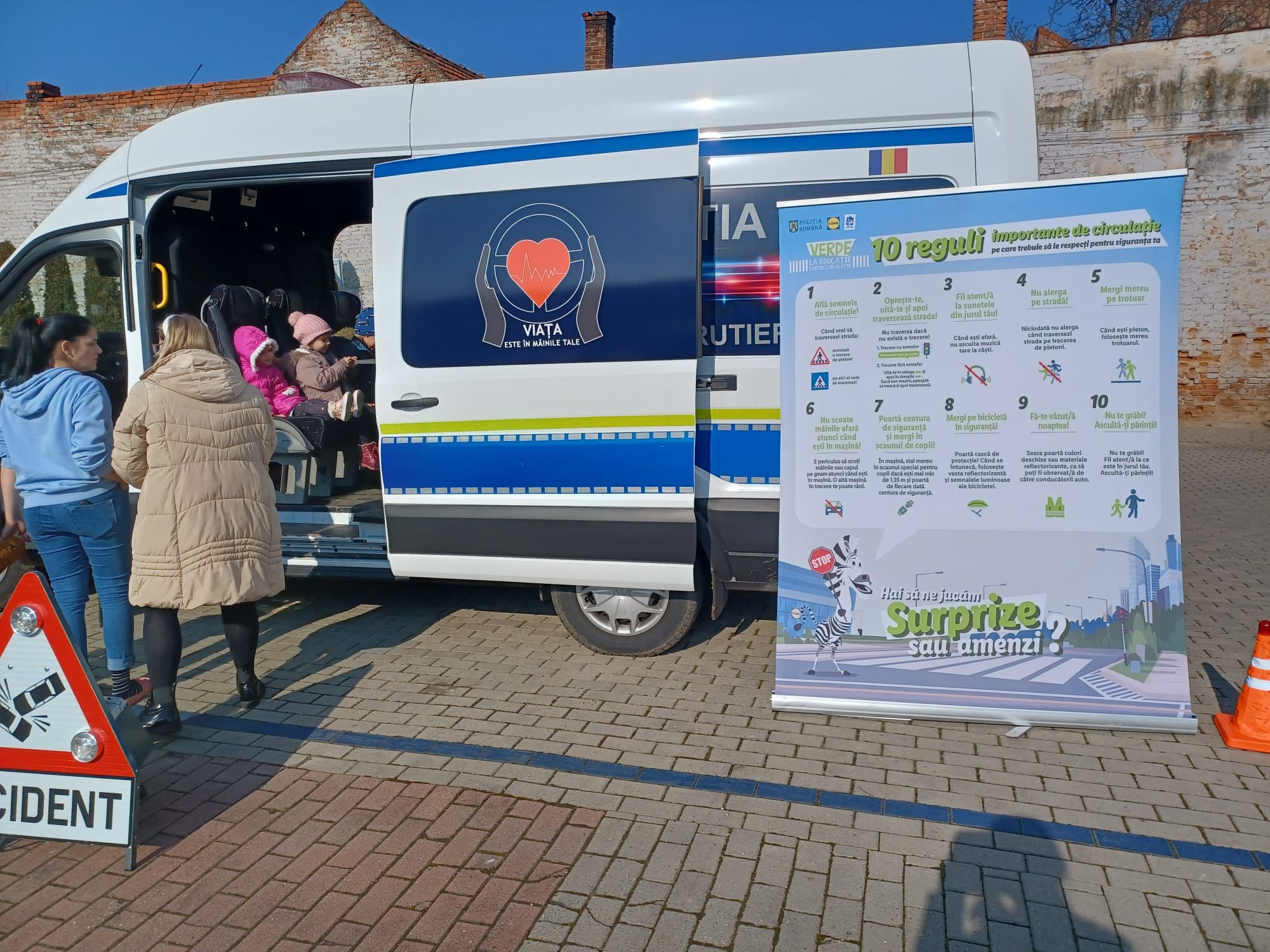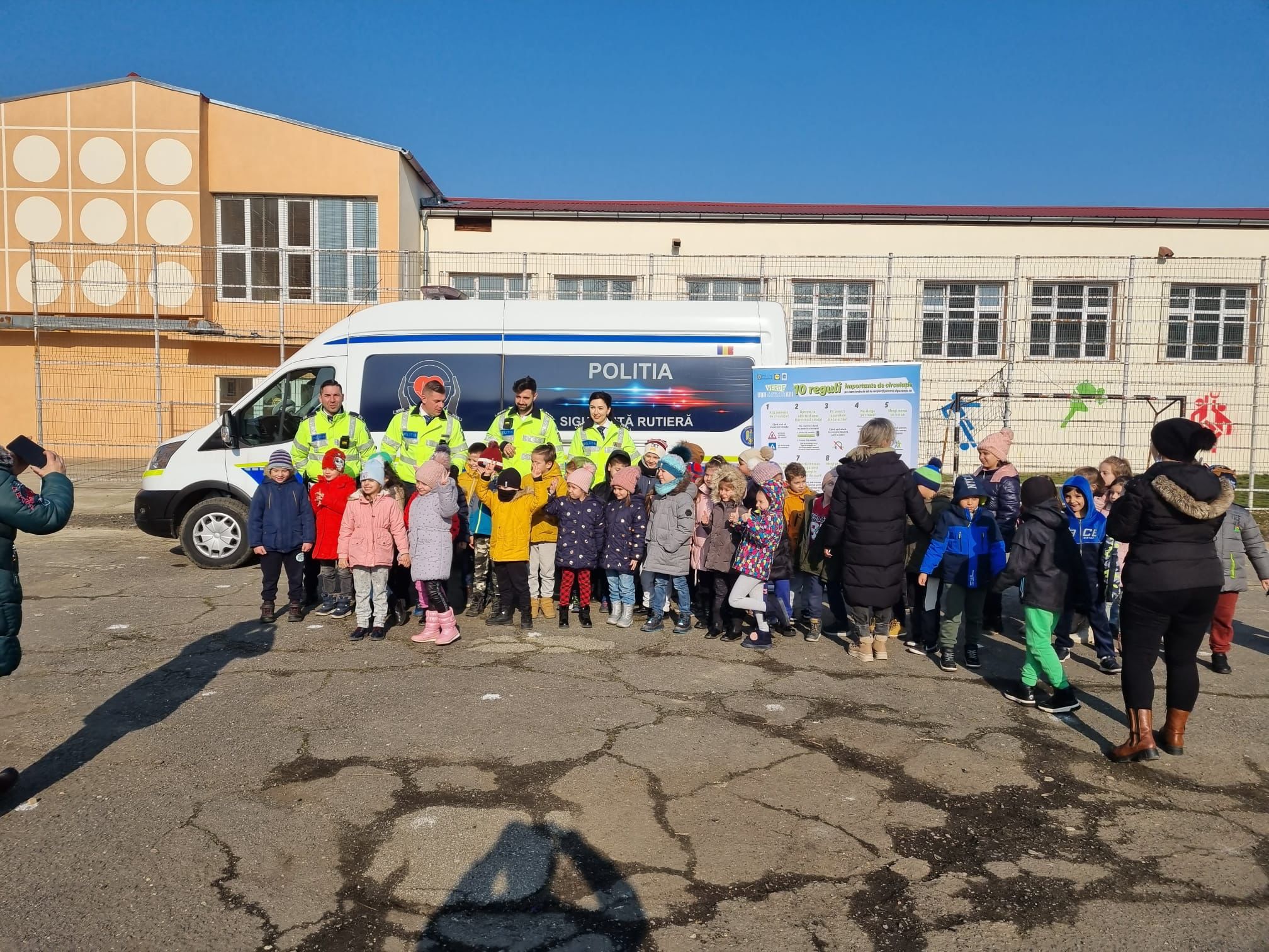 La această activitate au participat 180 de elevi din clasele I-IV, care au învățat cum să traverseze strada în siguranță, cum să meargă pe bicicletă și care sunt locurile sigure în interiorul autovehiculelor. Polițiștii au răspuns și la întrebările elevilor cu privire la provocările cu care se confruntă zilnic.