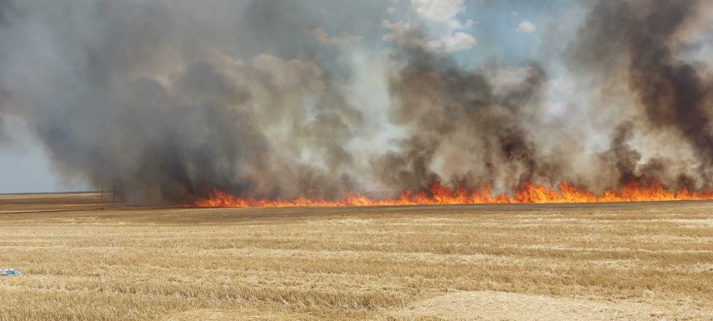 De la începutul acestei luni, în județul Timiș s-au înregistrat peste 100 de incendii de vegetație uscată și miriște, afectând o suprafață de aproximativ 450 de hectare de teren. Dintre acestea, peste 200 de hectare reprezintă culturile agricole cuprinse de aceste incendii. Cele mai multe incendii care au cuprins lanurile de grâu și orz au avut loc în localitățile Otelec, Gherman, Toager, Valcani.