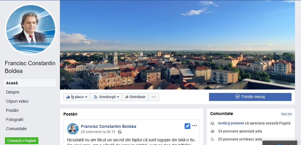 Primarul Lugojului, Francisc Constantin Boldea, are pagină oficială pe Facebook. Pagina a fost deschisă la sfârșitul lunii trecute și are deja câteva postări. Până în momentul de față a strâns câteva zeci de aprecieri.