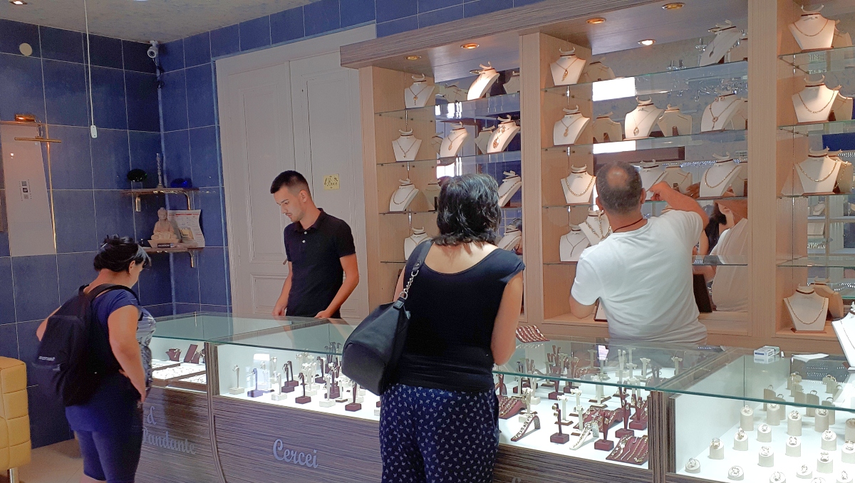 “Avem o gamă variată de bijuterii. De la verighete, inele de logodnă, lănțișoare, brățări, brățări pentru copii, până la coliere și seturi mai complexe. Bijuteriile pe care le comercializăm aici, în magazinul din Lugoj, sunt de 14 karate, dar putem face sau putem aduce bijuterii de 18 karate, pe comandă. Avem peste 2.000 de modele de verighete, însă putem face orice model la comandă. Dacă vine cineva cu un model, pe care l-a găsit pe Internet, sau dacă vrea să combine două modele pe care le vede aici, la noi, putem să facem asta fără probleme. În România mai sunt doar două magazine care mai fac asta la nivelul la care o facem noi. O să avem în magazinul de la Lugoj peste 100 de modele de lănțișoare și coliere. Prețurile, ne-am interesat cum este piața aici, în Lugoj, și avem cele mai mici prețuri din oraș”, ne-a declarat Bekir Ercin.