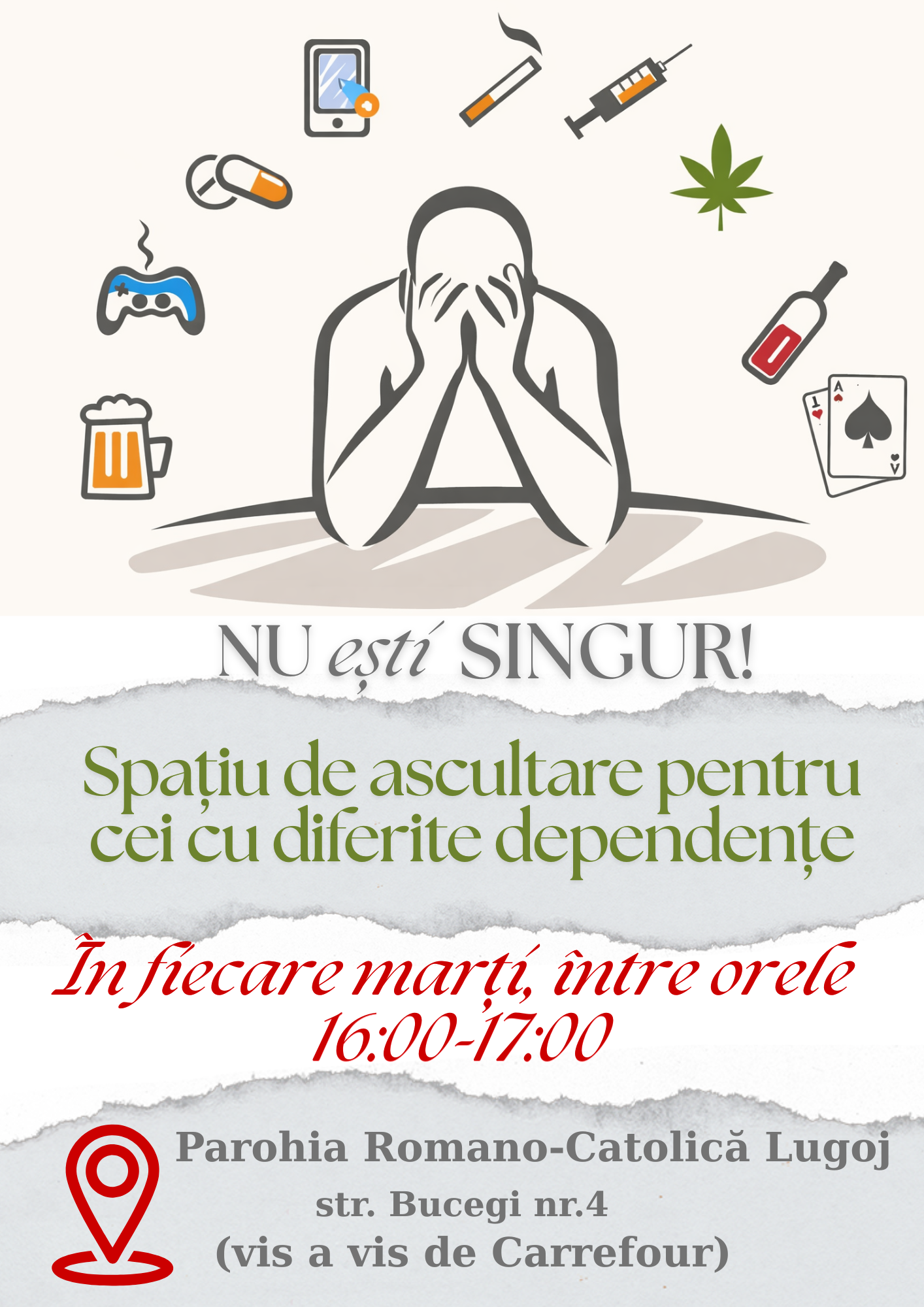 Parohia Romano-Catolică din Lugoj vine în sprijinul comunității locale prin organizarea unui „spațiu de ascultare” dedicat persoanelor care se confruntă cu diverse forme de dependență, precum jocurile de noroc și alte comportamente adictive.