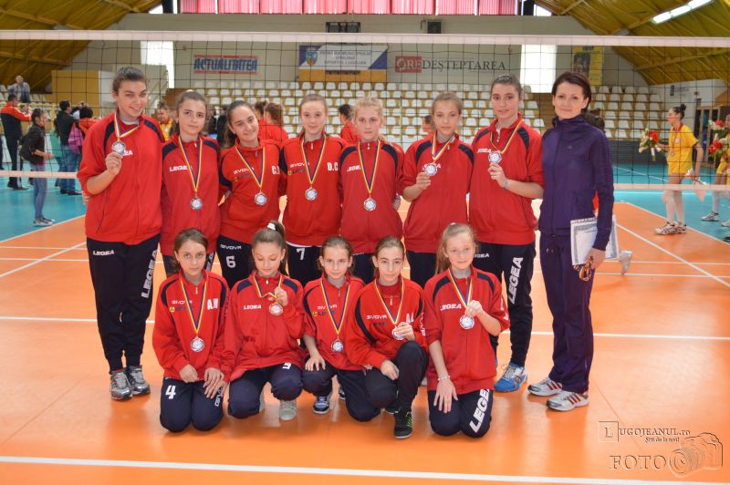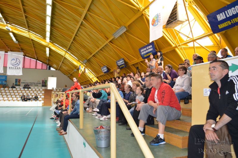 minivolei 2013 2014 finala lugoj css lugojeanul foto (5)Finala campionatului de minivolei al României a avut loc astăzi la Lugoj, cu începere de la ora 11:30, la Sala Sporturilor „Ioan Kunst Ghermănescu” din municipiu, acolo unde echipa gazdă, care a ajuns în finală după meciuri dificile, dar extrem de frumoase, a întâlnit formația Dinamo București. Deși au reușit să câștige primul set al întâlniri, junioarele lugojence nu au putut să țină pasul și în următoarele trei seturi cu adversarele lor din capitală, astfel că după cele patru seturi de joc, partida s-a încheiat cu scorul de 1 la 3 (25-20; 15-25; 21-25; 14-25).