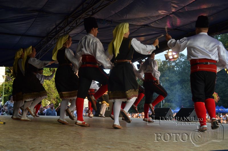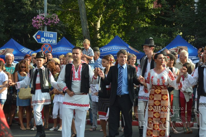 După hora de început, spectacolul s-a mutat pe scenă, acolo unde ansamblurile din străinătate au mai dansat încă o dată pentru lugojenii prezenţi în Piaţa Victoriei, iar liderii grupurilor au primit fiecare câte o distincţie din partea directorului de festival, Puiu Munteanu. Soliştii, care au făcut şi ei spectacol, au fost Nicoleta Voica, Carmen Popovici Dumbravă, Ramona Miheţ, Doriana Talpeş şi Mile Povan. În tot acest timp, lugojenii nu au stat pe loc, ci au întins hore şi brâuri.