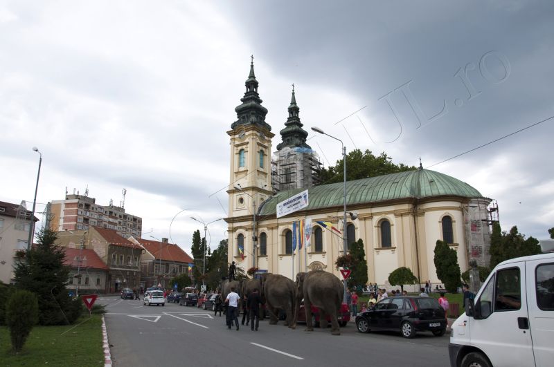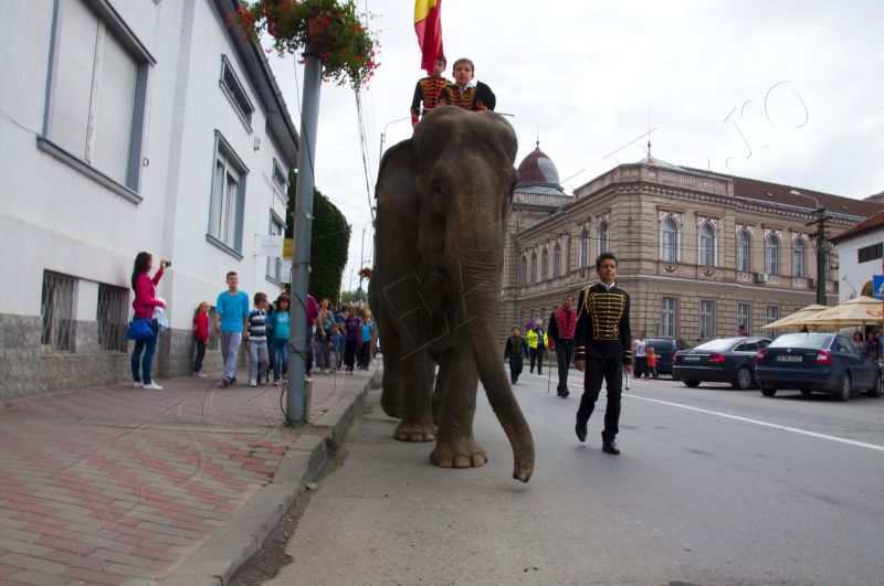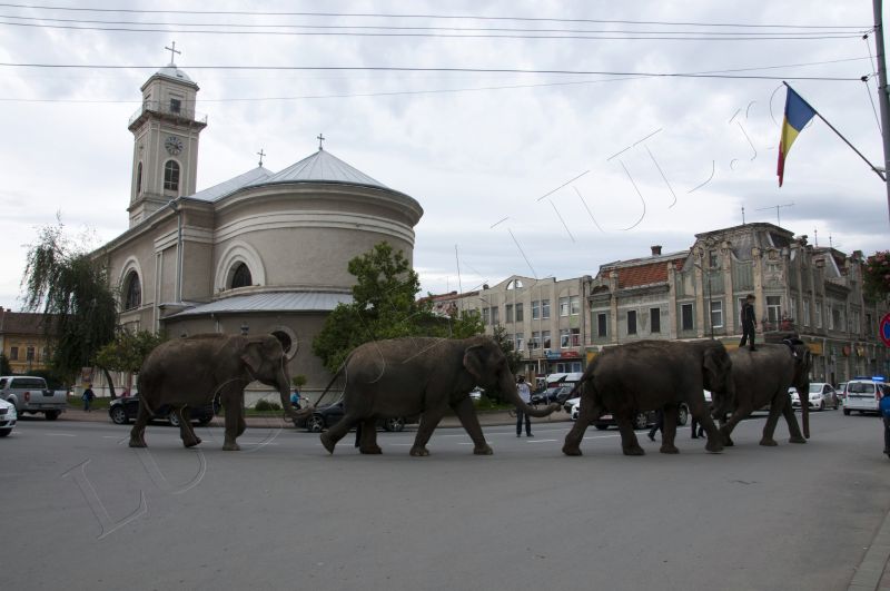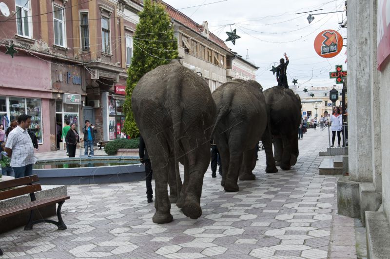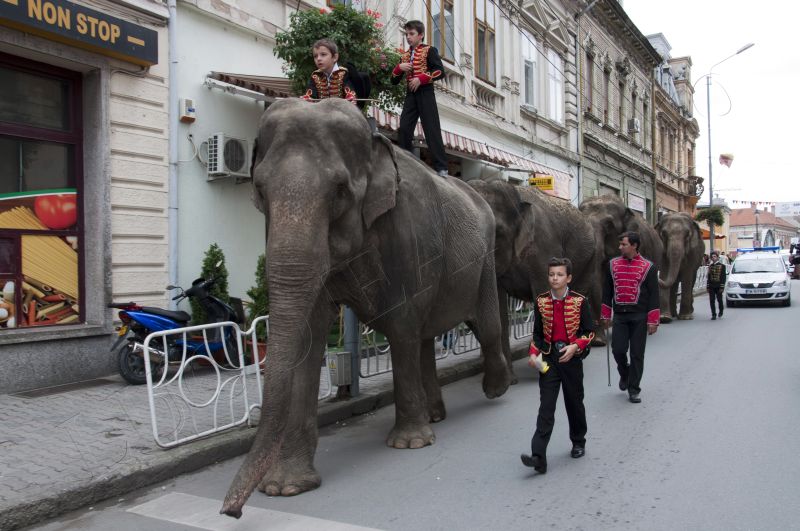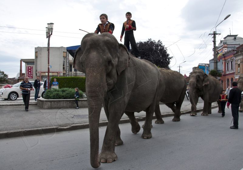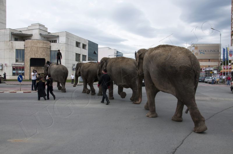 Patru elefanti ai celui mai mare circ mobil din Romania au incantat astazi privirile lugojenilor care se plimbau, in jurul orei 13:00, pe strazile din centrul orasului. Parada organizata de catre acrobatii si dresorii echipei de circ a avut scopul de a-i instiinta pe lugojeni ca in oras vor avea loc, de maine pana duminica, o serie de spectacole cum nu s-au mai vazut la Lugoj. Circul este amplasat in zona plopilor din oras, pe malul Timisului, in apropiere de piata de sub cort.