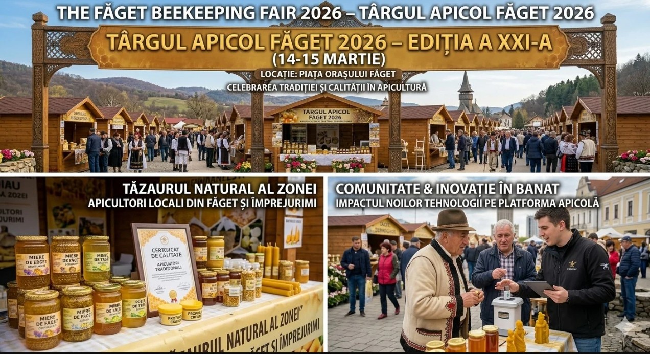 Locuitorii din Lugoj și împrejurimi sunt invitați să participe la Târgul Apicol Făget 2026 – Ediția a XXI-a, care se va desfășura pe 14 și 15 martie, la Piața Agroalimentară Făget, str. Independenței nr. 5, județul Timiș. Evenimentul este gratuit și se adresează apicultorilor profesioniști, începătorilor și pasionaților de produse apicole autentice.