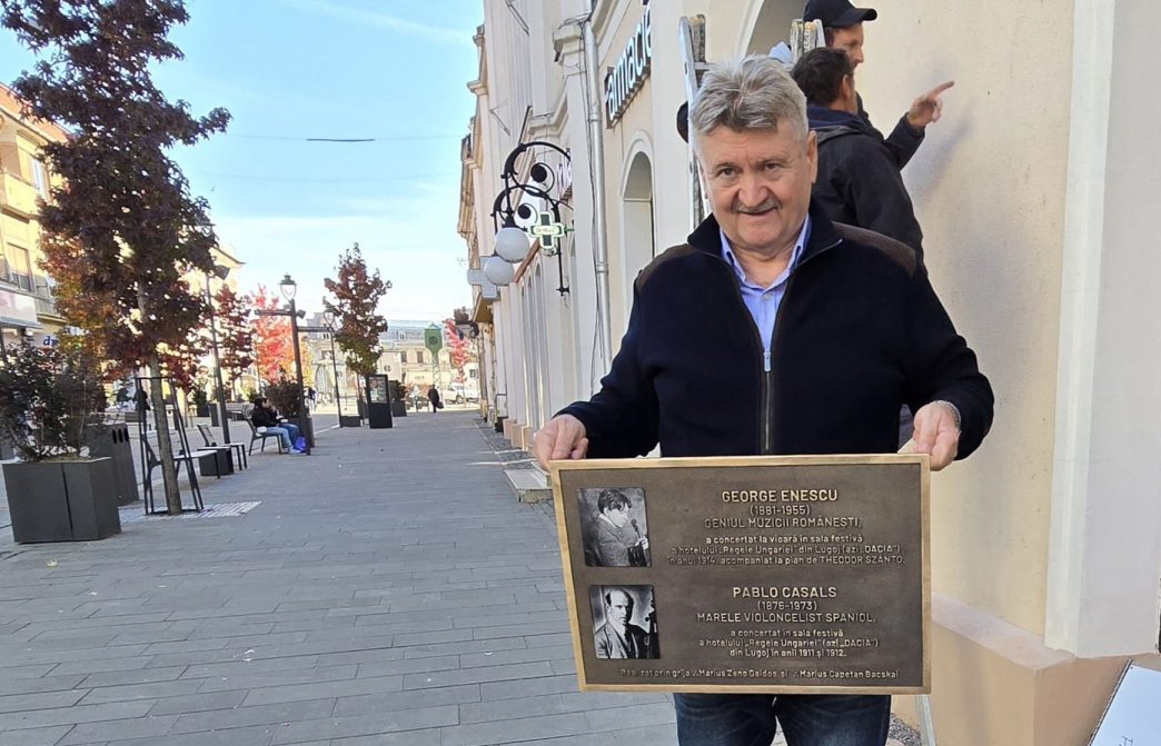 Lugojul, supranumit „Florența Banatului”, își confirmă din nou statutul de oraș al muzicii printr-un moment de mare încărcătură culturală și istorică. Sâmbătă, 25 octombrie, începând cu ora 14:30, la Hotelul „Dacia” va avea loc dezvelirea unei plăci memoriale din bronz dedicate marilor corifei ai muzicii universale, George Enescu și Pablo Casals. Evenimentul este organizat de ing. Marius Gaidoș, patronul Hotelului „Dacia”, un intelectual lugojean dedicat recuperării memoriei culturale a orașului și promovării autenticului act cultural local.