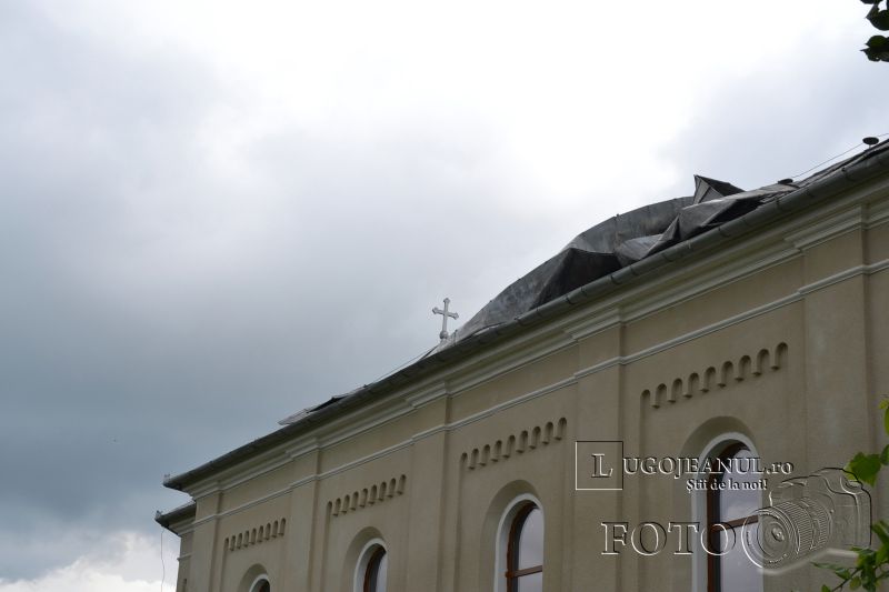 Din cauza ploii, cateva picturi de pe tavanul bisericii au avut de suferit. La fata locului sunt asteptati in aceste momente pompierii cu autospeciala cu scara de mari dimensiuni, singura de acest gen din judetul Timis. Vom reveni cu amanunte de la fata locului.La momentul la care pompierii au ajuns la fata locului, ambreiajul masinii a cedat, iar acum pompierii incearca sa o repare. Masina nu va fi capabila sa intervina, pompierii cerand deja un mecanic de la Lugoj pentru a incerca sa rezolve defectiunea.