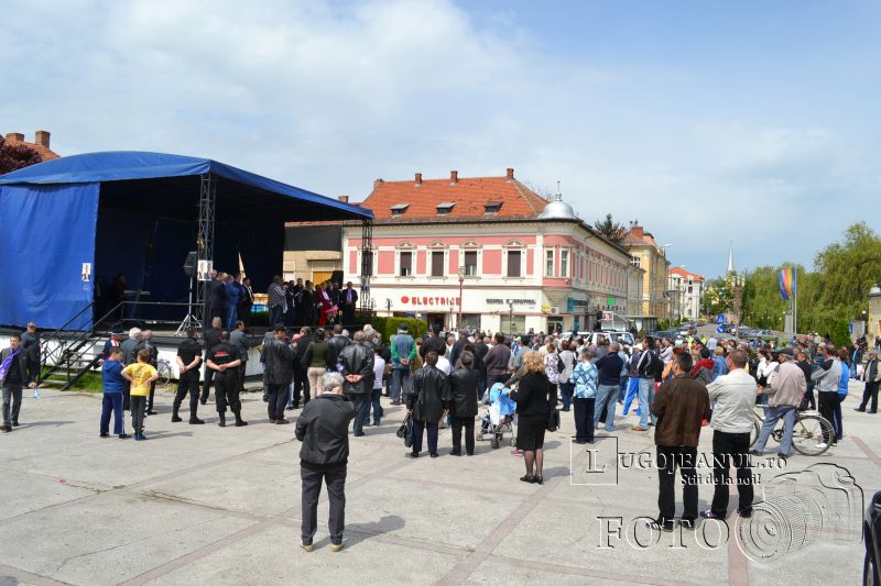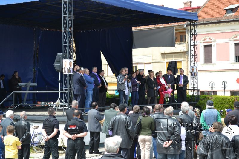 Senzațional! Peste 100 de lugojeni au luat parte astăzi, cu începere de la ora 12:00, după o oră de întârziere, la primul miting electoral din oraș dedicat euroalegerilor din 25 mai. Cu acest prilej, la Lugoj a poposit însuși Dan Diaconescu, fondatorul PPDD și deținătorul postului OTV, închis de CNA anul trecut. La întâlnire au participat liderii partidului din Lugoj și Timișoara, dar și personalități publice din jurul adunării politice, toți luând cuvântul și vorbind despre ciocoii de la conducerea țării.