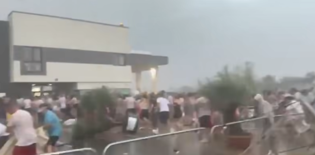 Când a ajuns deasupra aeroportului, zeci de mii de oameni s-au trezit împinși din toate părțile de rafale de vânt ce depășeau pe alocuri 100 de kilometri la oră. Corturile pe care organizatorii le-au montat în perimetrul zonei de desfășurare au fost luate pe sus, iar scena a fost aproape distrusă în urma fenomenelor meteo.