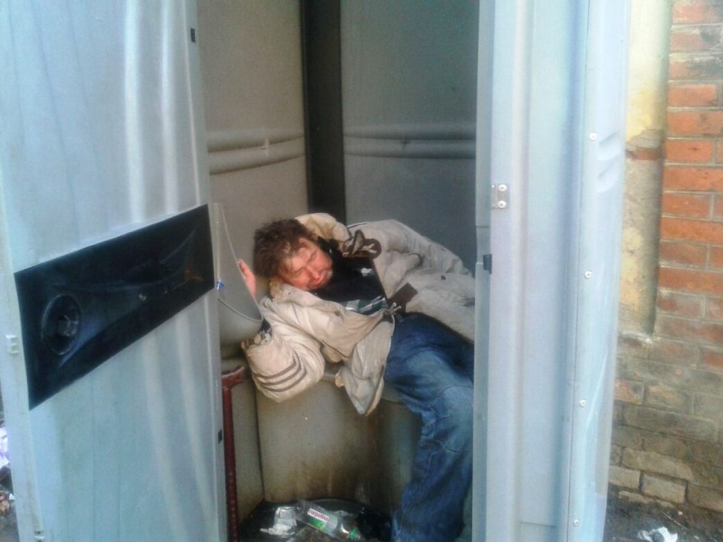 Ziua și-o petrece prin piață, odihnindu-se pe un scaun în pișoarul WC-ului public din imediata vecinătate, iar noaptea și-a făcut culcuș în WC-ul ecologic din parcul din spatele primăriei. Aceasta este, pe scurt, povestea vieții lui Iuga Gavril, iar noi, ar trebui să ne întrebăm dacă acest om este condamnat pe viață la nepăsarea semenilor săi?