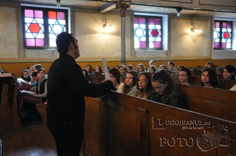 Discuția a fost apoi preluată de Ivan Bloch, președintele Comunității Evreiești din Lugoj, care le-a vorbit copiilor despre ce a însemnat Holocaustul pentru Poporul Evreu. La rândul lor, elevii au prezentat cartea pe care au realizat-o în proiect, tradusă în limba engleză și denumită „Trei povești despre Holocaust”, în care, cu ajutorul ilustrațiilor, autorii prezintă trei întâmplări reale din timpul masacrului din lagărele naziste, trăite de supraviețuitori. Ziua Holocaustului se sărbătorește în fiecare an pe 9 octombrie.