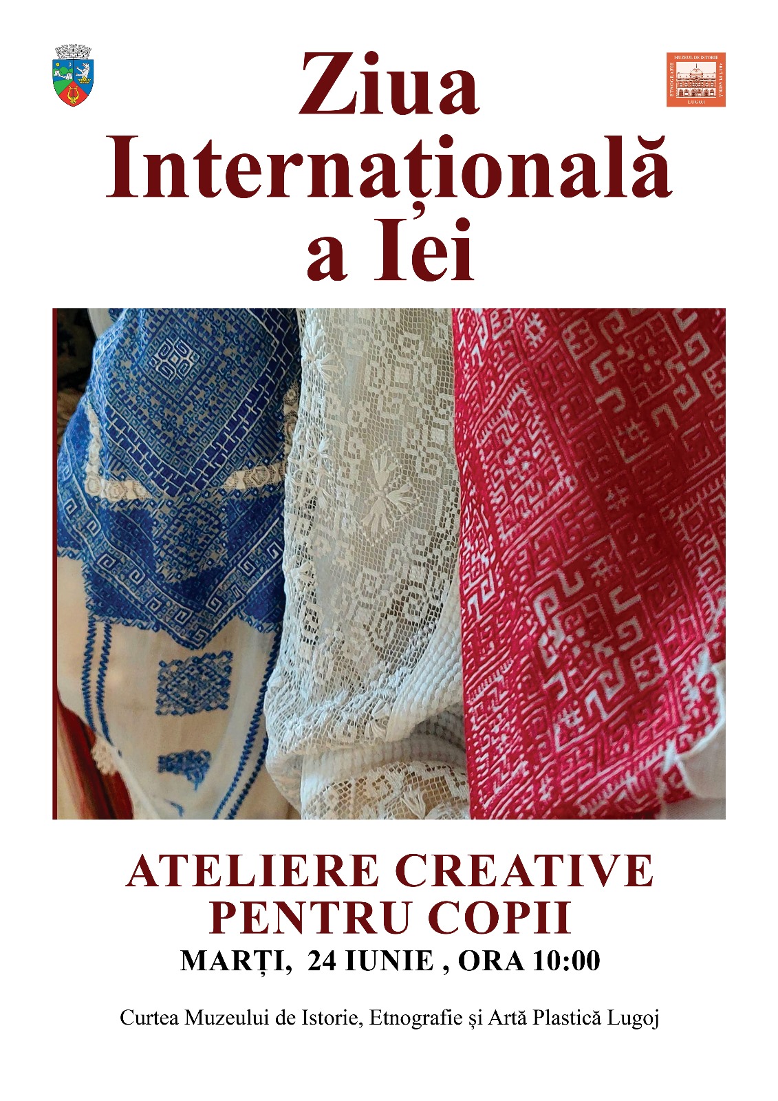Muzeul de Istorie, Etnografie și Artă Plastică din Lugoj marchează Ziua Universală a Iei românești printr-o serie de ateliere creative dedicate copiilor. Evenimentul va avea loc marți, 24 iunie, începând cu ora 10:00, în curtea muzeului, și este organizat în colaborare cu mai multe instituții de învățământ din oraș.